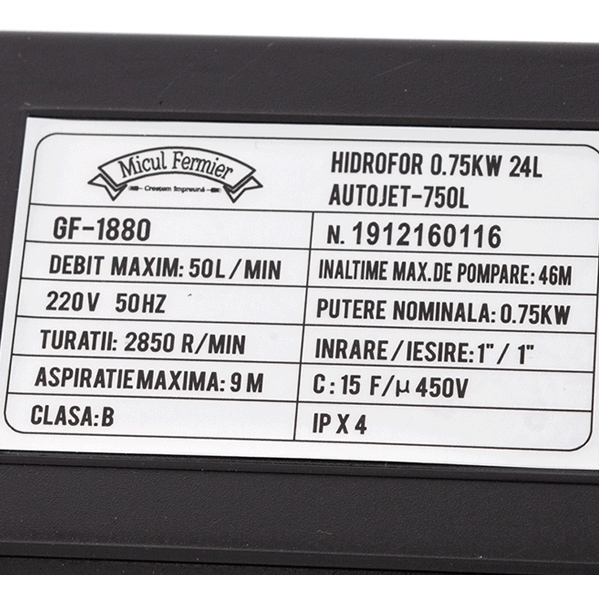 | Adancime maxima de aspirare | 9 m |