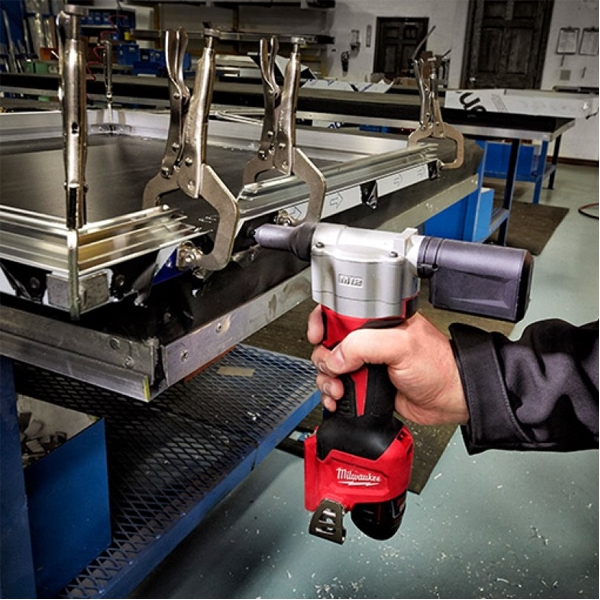 Pistol de nituit subcompact Milwaukee M12BPRT-0 adecvat pentru toate pop-niturile din aluminiu, otel, otel inoxidabil si cupru de pana la 4.8 mm.