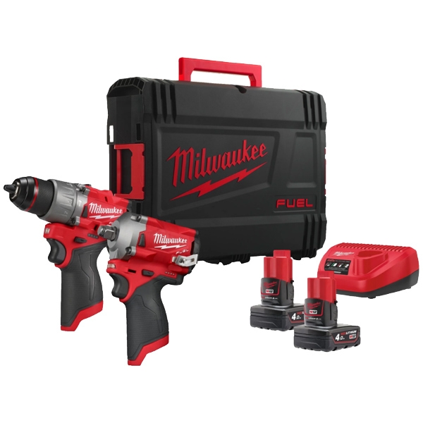 2 x Milwaukee - 2x M12 B4 - 2x Acumulator, Li-Ion, 12 V, 4 Ah