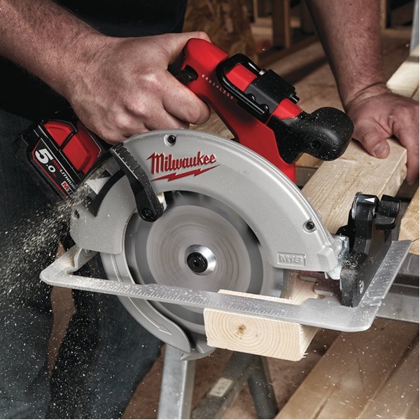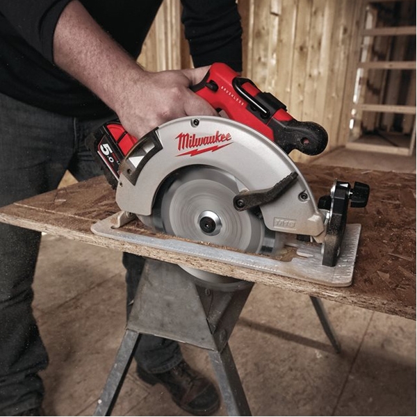 Fierastrau circular Milwaukee M18 BLCS66-0X cu motor fara perii M18 , cu o panza de 190 mm ce asigura o adancime de taiere de 66 mm si care ii permite fierastraului sa debiteze trei placi stivuite de OSB de 19 mm.
