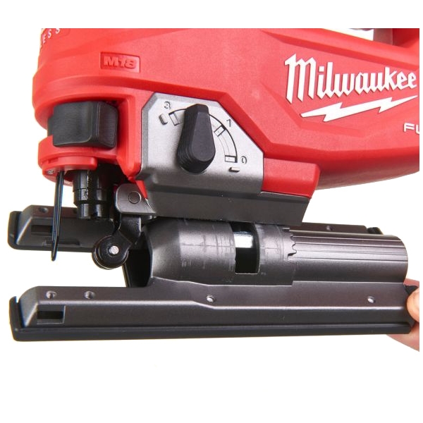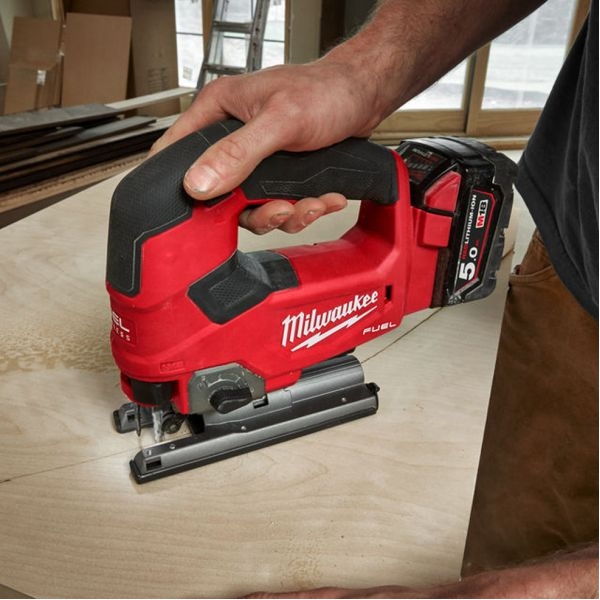 Fierastrau pendular Milwaukee M18FJS-502X cu motor fara perii POWERSTATE pentru o debitare rapida, o durata mare de exploatare a sculei si taieri de pana la 32 m in placi OSB de 19 mm (cu un acumulator de 5.0 Ah).