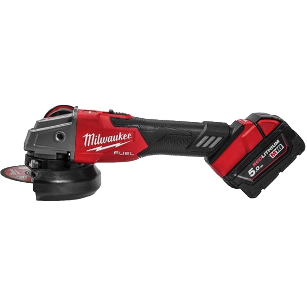 Polizor unghiular Milwaukee M18FSAG125XB-502X cu dimensiune redusa a angrenajului si unghi mai mic al slotului acumulatorului - pentru un echilibru si ergonomie mai bune comparativ cu modelul anterior.