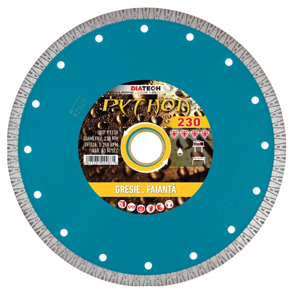 Diatech - PT230 - Disc diamantat de taiere continuu, 230x30-25.4x1.8 mm, taiere umeda