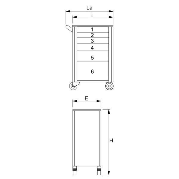 6 sertare culisante pe glisiere cu bile
