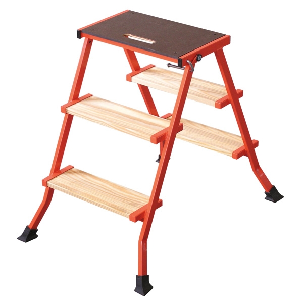 Scara dubla pliabila LESCABO din otel, 2 tronsoane cu trepte din lemn: