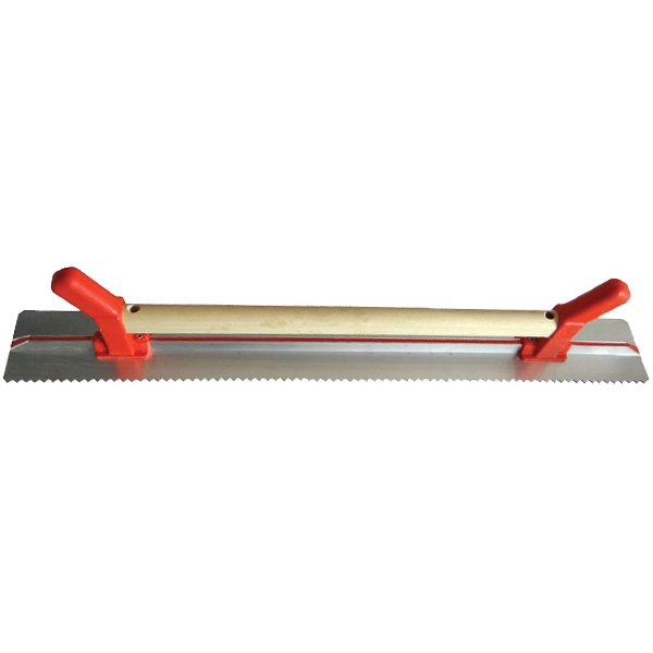 Rigla de tencuire cu o latura dintata si maner de lemn + PVC