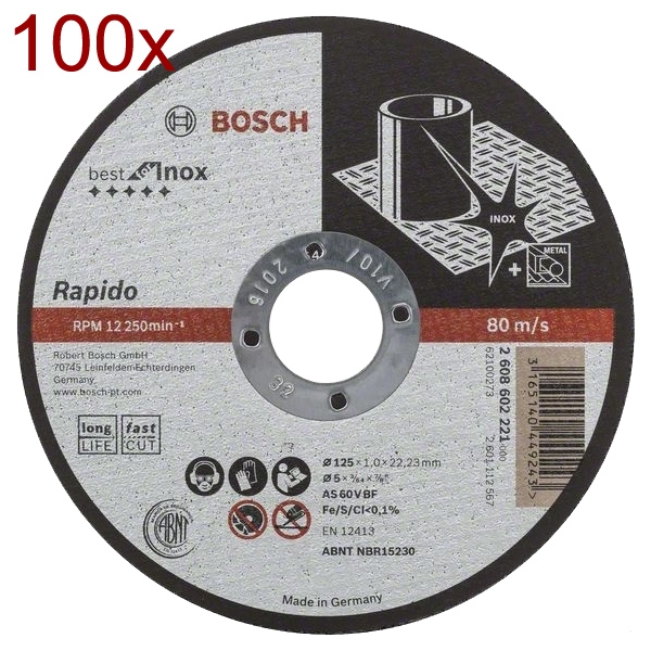 100 x Bosch - Best for Inox - Rapido - Disc taiere inox, 125x22.2x1 mm:
