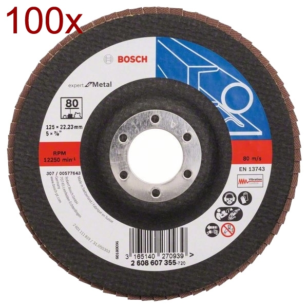 100 x Bosch - Expert for Metal - Disc lamelar, profil drept, 125x22.2 mm, granulatie 80: