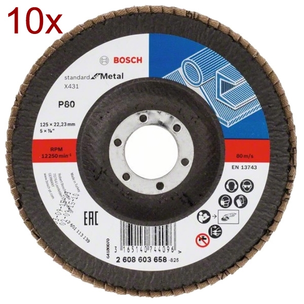 10 x Bosch - X431 - Disc lamelar, profil convex, 125x22.2 mm, granulatie 80: