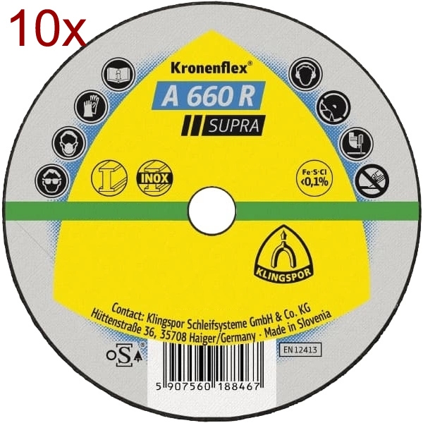 10 x Klingspor - A 660 R SUPRA - Disc taiere inox si metal, 76x10x1.6 mm: