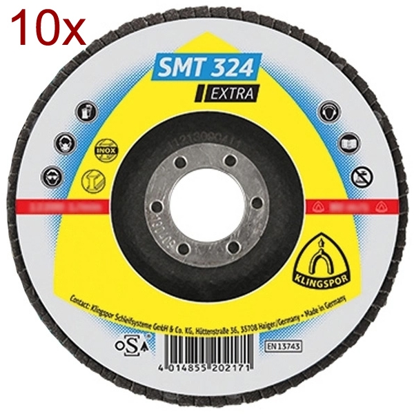 Cod unic produs: Pachet - 10x Klingspor - SMT 324 EXTRA - Disc lamelar, profil convex, 125x22.2 mm, granulatie 80