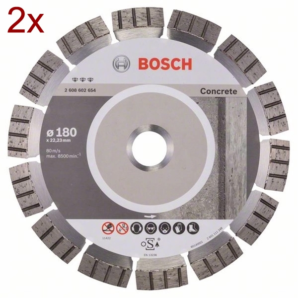 | Set de livrare | 2 x Bosch - Best for Concrete - Disc diamantat de taiere segmentat, 180x22.2x2.4 mm, taiere uscata |