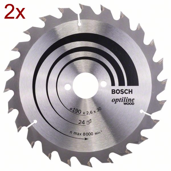 2 x Bosch - Optiline Wood - Panza fierastrau circular, lemn, 190x30x2.6 mm, 24 dinti: