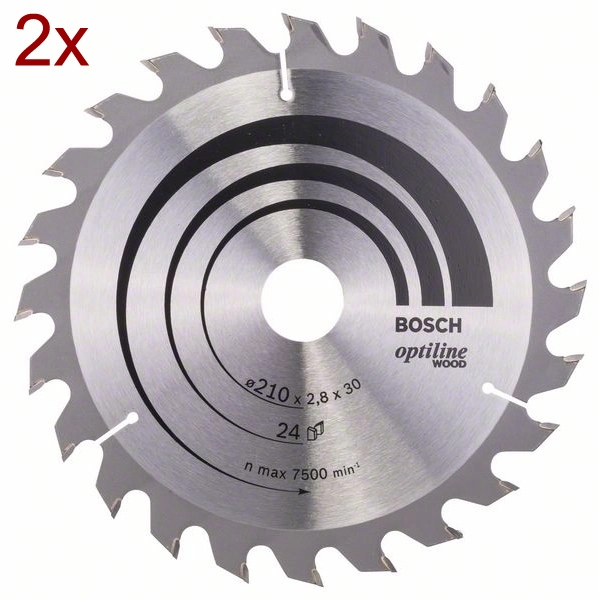 | Set de livrare | 2 x Bosch - Optiline Wood - Panza fierastrau circular, lemn, 210x30x2.8 mm, 24 dinti |