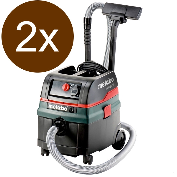 2 x Metabo - ASR 25 L SC - Aspirator umed-uscat, 1400 W, 248 mbar, 25 l, priza scule electrice, comutator curatare filtru: