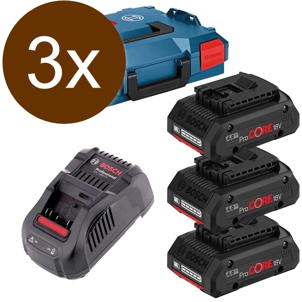 3 x Bosch - 0615990L1R - Set 3 acumulatori si incarcator, Li-Ion, 18 V, 4 Ah, valiza speciala: