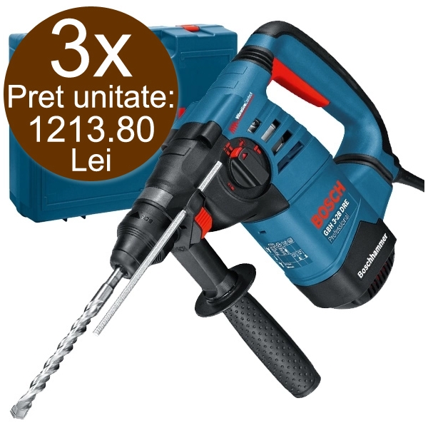 3 x Bosch - GBH 3-28 DRE - Rotopercutor SDS-Plus, 800 W, 3.1 J, protectie suprasarcina, valiza plastic: