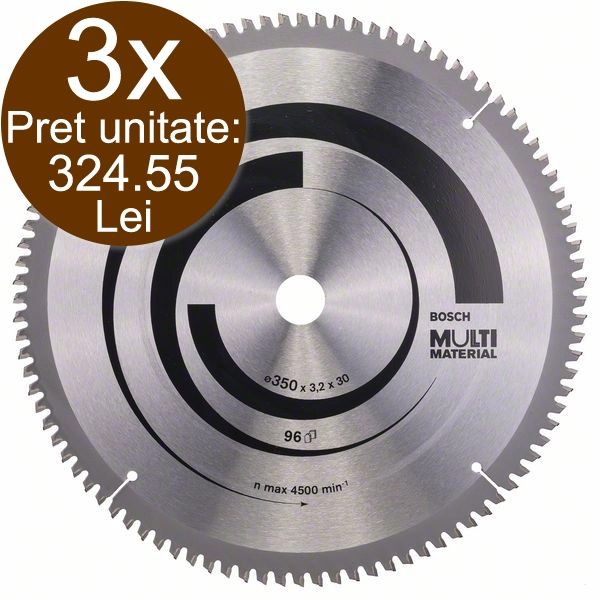 | Set de livrare | 3 x Bosch - Multi Material - Panza fierastrau circular, multimaterial, 350x30x3.2 mm, 96 dinti |