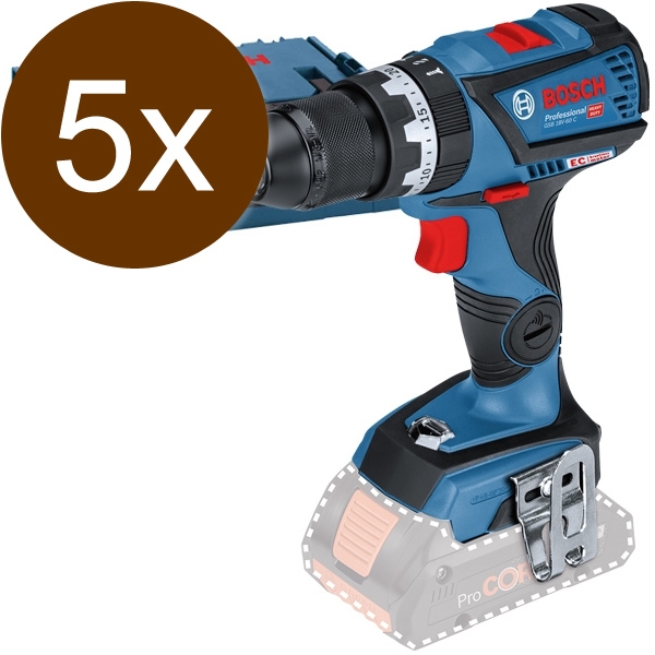 | Set de livrare | 5 x Bosch - GSB 18V-60 C - Masina de gaurit si insurubat cu percutie fara acumulatori si incarcator, Li-Ion, 18 V, - Ah, 60 Nm, motor fara perii, led iluminare, valiza speciala Valiza de transport si depozitare L-Boxx |