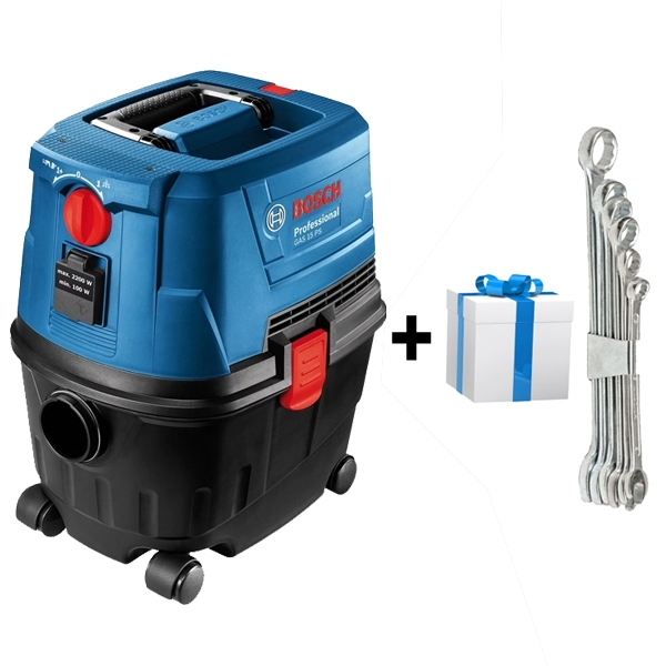 | Set de livrare | 1 x Bosch - GAS 15 PS - Aspirator umed-uscat, 1100 W, 270 mbar, 15 l, functie suflare, priza scule electrice, comutator curatare filtru Furtun, 3 m Cot Duza pentru rosturi Manson de scula Set duze pentru podea 2 tuburi 1 x Vorel - 51560 - Set chei combinate, 8-17 mm, 6 bucati |
