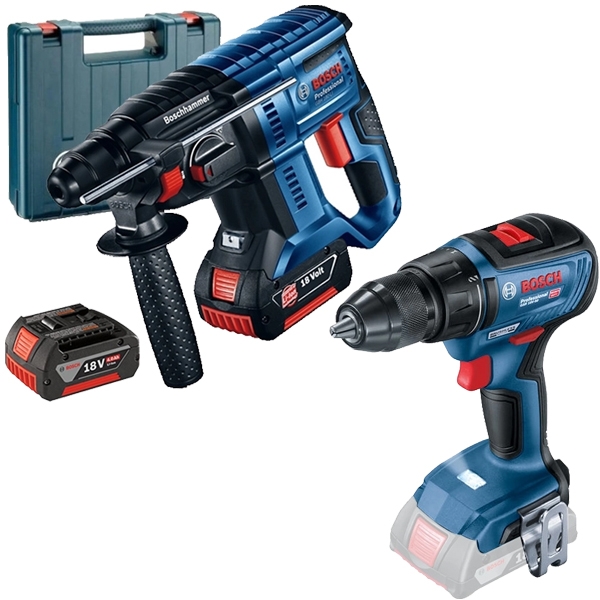 | Set de livrare | 1 x Bosch - GBH 180-LI - Rotopercutor SDS-Plus cu 2 acumulatori, Li-Ion, 18 V, 4 Ah, 1.7 J, turatie reglabila, valiza plastic 2 x acumulatori, Li-Ion, 18 V, 4 Ah Incarcator Laveta pentru masina Limitator de reglare a adancimii 210 mm Mandrina SDS-Plus Maner suplimentar Valiza de plastic 1 x Bosch - GSR 18V-50 - Masina de gaurit si insurubat fara acumulatori si incarcator, Li-Ion, 18 V, - Ah, 50 Nm, motor fara perii, led iluminare Acumulatorii si incarcatorul nu sunt inclusi in setul de livrare! |