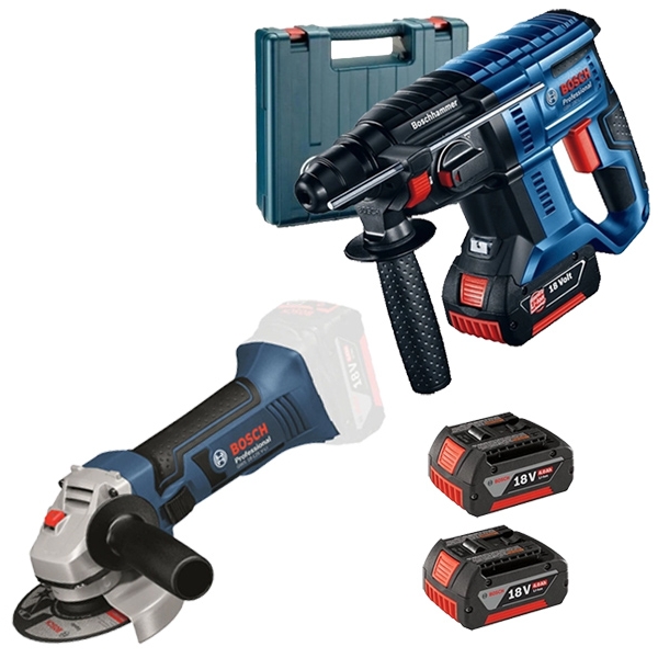 | Set de livrare | 1 x Bosch - GBH 180-LI - Rotopercutor SDS-Plus cu 2 acumulatori, Li-Ion, 18 V, 4 Ah, 1.7 J, turatie reglabila, valiza plastic 2 x acumulatori, Li-Ion, 18 V, 4 Ah Incarcator Laveta pentru masina Limitator de reglare a adancimii 210 mm Mandrina SDS-Plus Maner suplimentar Valiza de plastic 1 x Bosch - GWS 18-125 V-LI - Polizor unghiular fara acumulatori si incarcator, Li-Ion, 18 V, - Ah, 125 mm, protectie repornire Aparatoare de protectie Maner suplimentar 1 x Bosch - ProCORE - Acumulator, Li-Ion, 18 V, 4 Ah, indicator nivel incarcare |