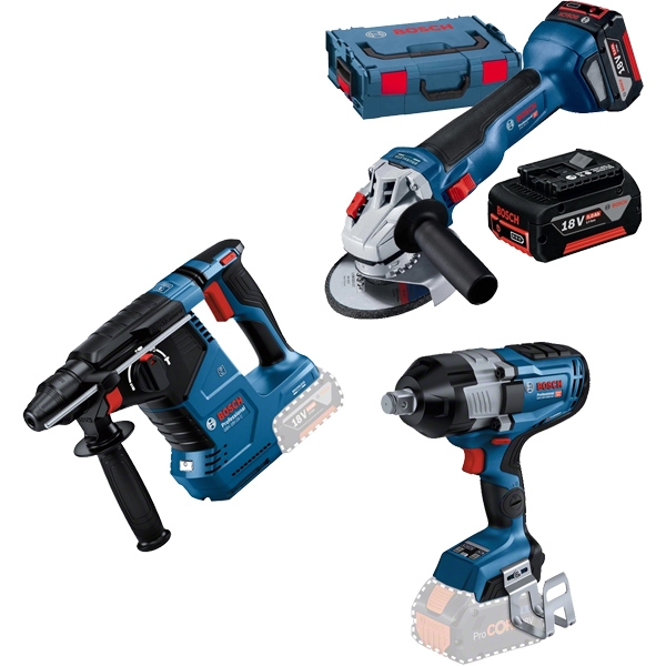 | Set de livrare | 1 x Bosch - GBH 18V-24 C - Rotopercutor SDS-Plus fara acumulatori si incarcator, Li-Ion, 18 V, - Ah, 2.4 J Limitator de reglare a adancimii Laveta pentru masina 1 x Bosch - GDS 18V-1600 HC - Masina de insurubat cu impact fara acumulatori si incarcator, Li-Ion, 18 V, - Ah, patrat 3/4 inch, 2200 Nm, - Agatatoare de curea 1 x Bosch - GWS 18V-10 - Polizor unghiular cu 2 acumulatori, Li-Ion, 18 V, 5 Ah, 125 mm, valiza speciala 2 acumulatori, Li-Ion, 18 V, 5 Ah Incarcator rapid GAL 1880 CV Flansa de prindere Piulita cu fixare rapida Aparatoare de protectie 1/1 insertie L-Boxx pentru scula si incarcartor Valiza de transport si depozitare L-Boxx 136 |