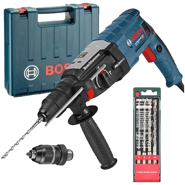 | Set de livrare | 1 x Bosch - GBH 2-28 F - Rotopercutor SDS-Plus, 880 W, 3.2 J, mandrina interschimbabila, sistem antivibratii, protectie suprasarcina, valiza plastic Laveta pentru masina Limitator de reglare a adancimii Maner suplimentar Valiza profesionala Mandrina rapida 13 mm 1 x Metabo - 6.25580 - Set burghie SDS-Plus, 5-10 mm, 4 bucati |
