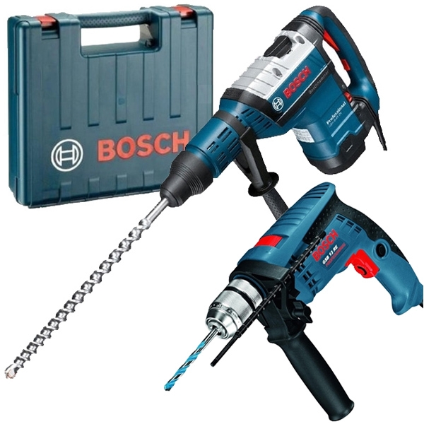 | Set de livrare | 1 x Bosch - GBH 8-45 DV - Rotopercutor SDS-Max Laveta pentru masina Maner auxiliar Tub de vaselina Valiza pentru transport 1 x Bosch - GSB 13 RE - Masina de gaurit cu percutie Limitator de reglare a adancimii 210 mm Mandrina rapida 13 mm |