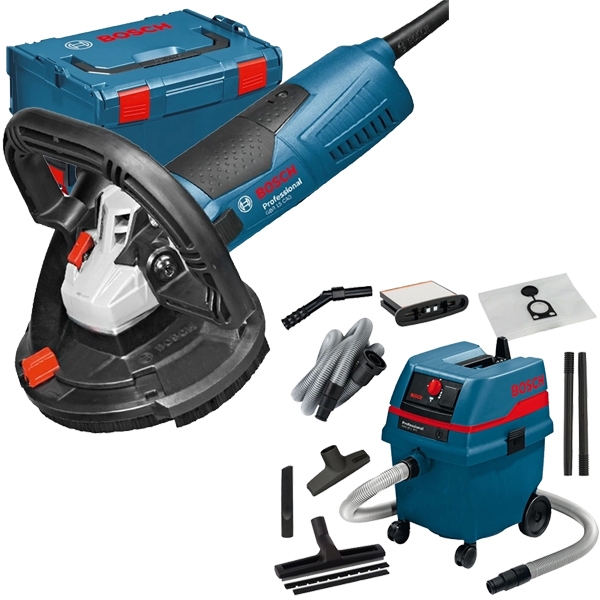 | Set de livrare | 1 x Bosch - GBR 15 CAG - Slefuitor pentru beton, 1500 W, 125 mm, protectie repornire, turatie constanta, pornire lina, valiza speciala 1/1 insertie L-BOXX pentru scula electrica 3 perii circulare de schimb Cheie de strangere Disc-oala diamantat, 125 mm Valiza de transport si depozitare L-BOXX 238 1 x Bosch - GAS 25 L SFC - Aspirator umed-uscat, 1200 W, 248 mbar, 25 l, priza scule electrice, comutator curatare filtru 2 tuburi de aspirare a prafului, lungime de 0,5 m, diametru de 35 mm Duza multifunctionala Duza pentru impuritati mari Duza pentru rosturi Filtru poliester Furtun cu lungimea de 3 m si diametrul de 35 mm Maner de reglare a aerului Sac din hartie |