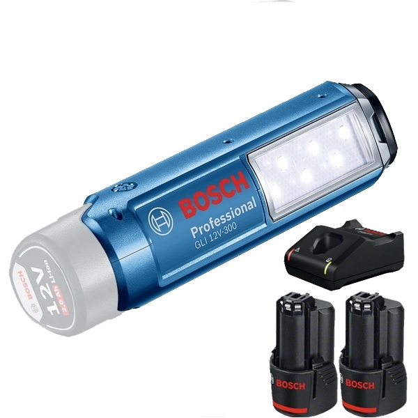Cod unic produs: Pachet - Bosch - GLI 12V-300 - Lampa/Lanterna + 2 acumulatori, 12 V, 2 Ah + incarcator