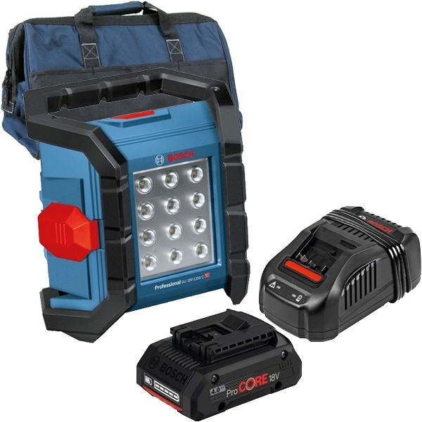 1 x Bosch - ProCORE - Acumulator, Li-Ion, 18 V, 4 Ah, indicator nivel incarcare 1 x Bosch - GAL 1880 CV - Incarcator acumulatori Li-Ion, 14.4-18 V, incarcare rapida 1 x Bosch - 1619BZ0100 - Geanta textila, 480x280x300 mm |