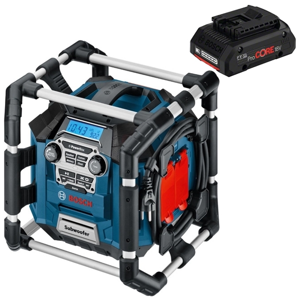 | Set de livrare | 1 x Bosch - GML 50 - Radio fara acumulatori si incarcator, 18 V 2 baterii 1.5 V LR6 Cablu Aux-In Telecomanda Incarcator integrat pentru acumulatori Acumulatorii nu sunt inclusi in setul de livrare 1 x Bosch - ProCORE - Acumulator, Li-Ion, 18 V, 4 Ah, indicator nivel incarcare |