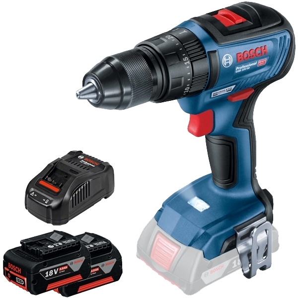 Cod unic produs: Pachet - Bosch - GSB 18V-50 - Masina de gaurit si insurubat cu percutie, 50 Nm, motor fara perii + 2 x Acumulator, Li-Ion, 18 V, 5 Ah + Incarcator