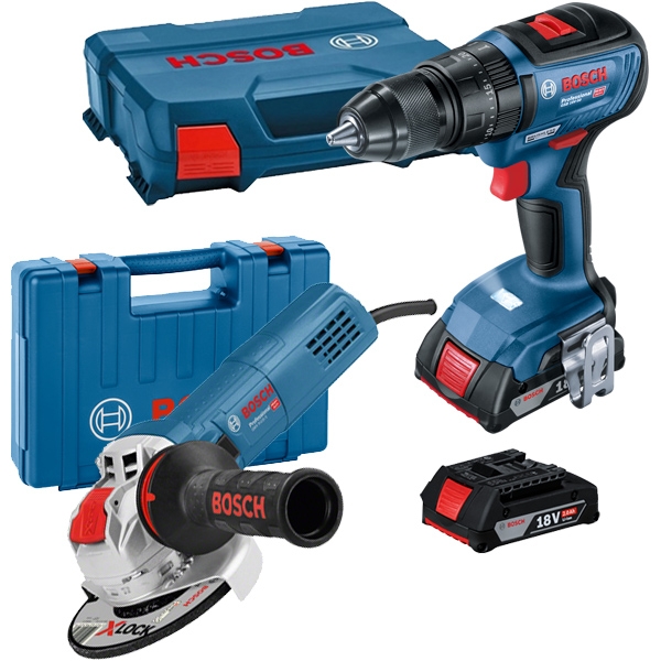 | Set de livrare | 1 x Bosch GSB 18V-50 - Masina de gaurit si insurubat cu percutie cu 2 acumulatori, Li-Ion, 18 V, 2 Ah, 50 Nm, motor fara perii, led iluminare, valiza plastic 2 x acumulatori, Li-Ion, 18 V, 2 Ah Incarcator GAL 18V-20 Valiza de transport si depozitare L-CASE 1 x Bosch - GWX 9-115 S - Polizor unghiular, 115 mm, valiza plastic Valiza de transport si depozitare |