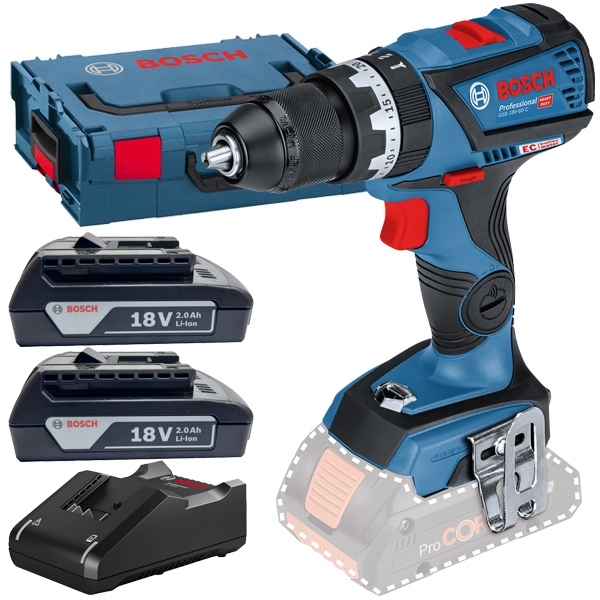Cod unic produs: Pachet - Bosch - GSB 18V-60 C - Masina de gaurit si insurubat cu percutie cu 2 acumulatori, Li-Ion, 18 V, 2 Ah, 60 Nm, motor fara perii, valiza speciala