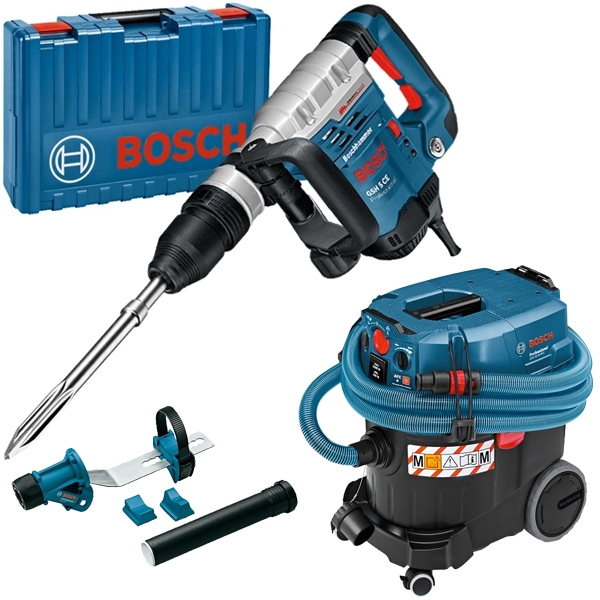 | Set de livrare | 1 x Bosch - GSH 5 CE - Demolator SDS-Max, 1150 W, 8.3 J, valiza plastic, accesorii Valiza profesionala Maner suplimentar Dalta ascutita 400 mm Laveta pentru masina Tub de unsoare 1 x Bosch - GDE MAX - Adaptor aspirare scule electrice, GSH 5 CE, GSH 7 VC, GSH 11 VC; GBH 5-40 DCE, GBH 7-46 DE, GBH 8-45 DV, GBH 11 DE 1 x Bosch - GAS 35 M AFC - Aspirator umed-uscat, 1200 W, 254 mbar, 35 l, priza scule electrice 1 x filtru-burduf plat PES 3 tuburi de aspirare placate cu crom, cu lungimea de 0,35 m si diametrul de 35 mm Duza pentru rosturi Furtun antistatic cu lungimea de 5 m si diametrul de 35 mm, cu adaptor pentru scula electrica Racord cotit Sac de eliminare Set duze pentru podea |