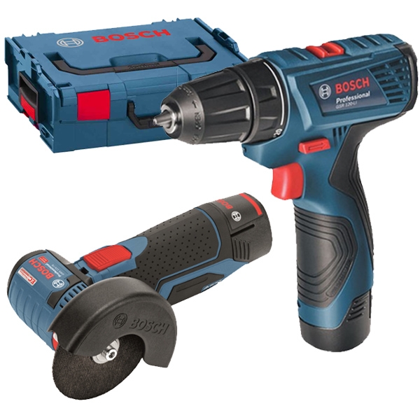 | Set de livrare | 1 x Bosch - GSR 120-Li - Masina de gaurit si insurubat, 30 Nm 1 x Bosch - GWS 12V-76 - Polizor unghiular, 76 mm, motor fara perii 2 acumulatori, Li-Ion, 12 V, 2 Ah Incarcator AL 1115 CV Valiza profesionala L-Boxx |