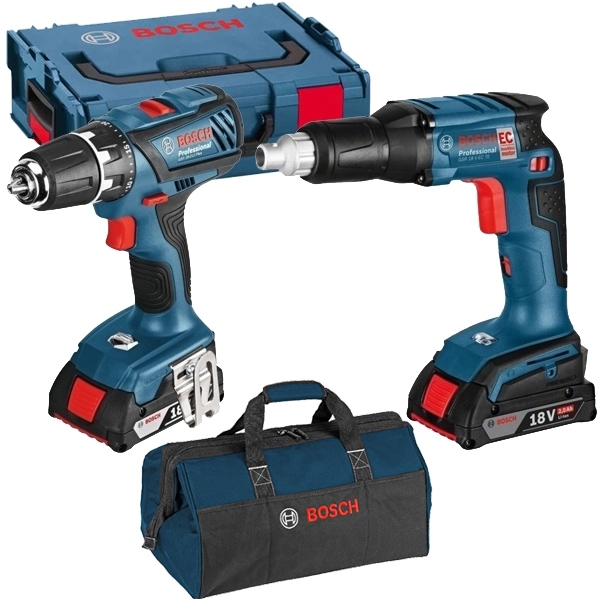1 x Bosch - GSR 18 V-EC TE + GSR 18-2-LI PLUS - Masina de insurubat cu 2 acumulatori, Li-Ion, 18 V, 4 Ah, 25 Nm, motor fara perii, turatie reglabila, valiza speciala: