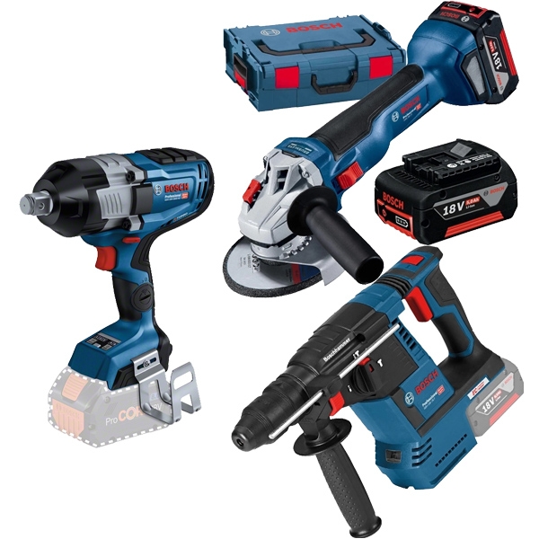 | Set de livrare | 1 x Bosch GSR 18V-90 C - Masina de gaurit si insurubat fara acumulatori si incarcator, Li-Ion, 18 V, - Ah, 64 Nm 1 x Bosch GKT 18V-52 GC - Fierastrau circular fara acumulatori si incarcator, Li-Ion, 18 V, - Ah, 140x20 mm 1 x Bosch GST 18V-155 SC - Fierastrau pendular fara acumulatori si incarcator, Li-Ion, 18 V, - Ah 1 x Bosch GEX 18V-125 - Slefuitor cu excentric fara acumulatori si incarcator, 18 V, - Ah, 125 mm 1 x Bosch ProCORE - Acumulator, Li-Ion, 18 V, 4 Ah, indicator nivel incarcare 2 x Bosch ProCORE - Acumulator, Li-Ion, 18 V, 5.5 Ah, indicator nivel incarcare 1 x Bosch GAL 1880 CV - Incarcator acumulatori Li-Ion, 14.4-18 V, incarcare rapida 4 x Bosch L-BOXX - Valiza speciala L-Boxx |