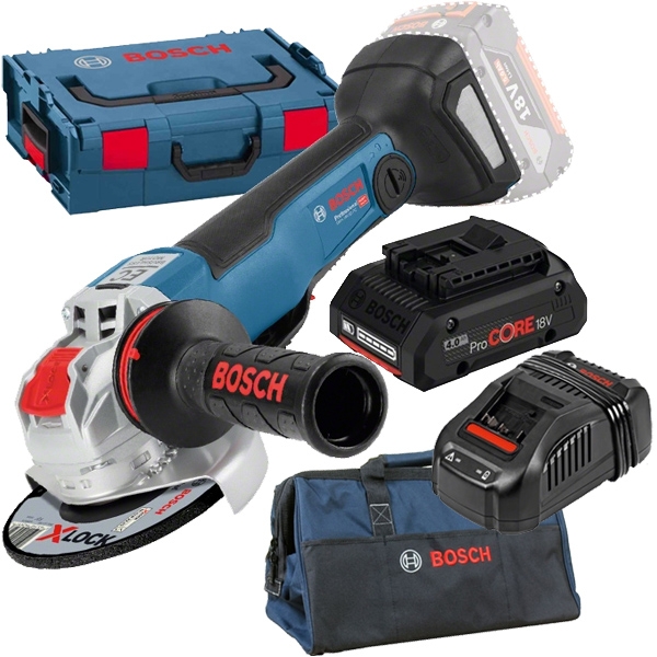 1 x Bosch - GWX 18V-10 PC X-LOCK - Polizor unghiular fara acumulatori si incarcator, Li-Ion, 18 V, - Ah, 125 mm, motor fara perii, protectie suprasarcina, aparatoare rapida, protectie repornire, valiza speciala: