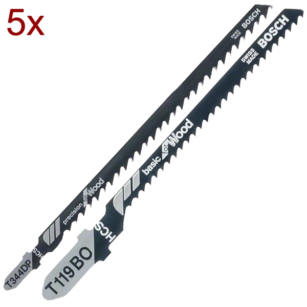 1 x Bosch - T 119 BO - Panza fierastrau pendular, tija cu un prag de prindere (T), 83 mm, lemn, taiere curba, fina, 5 bucati:
