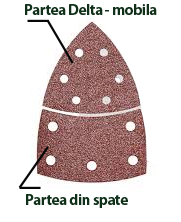 Astfel, o parte este destinata pentru exploatarea optima a hartiei abrazive, iar varful Delta al acesteia si al placii de slefuire poate fi desprins si intors fara efort.