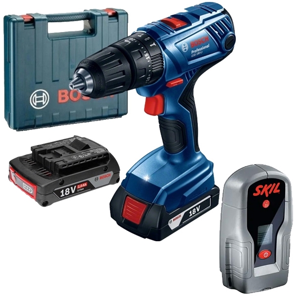 | Set de livrare | 1 x Bosch - GSB 180-LI - Masina de gaurit si insurubat cu percutie cu 2 acumulatori, Li-Ion, 18 V, 2 Ah, 54 Nm, led iluminare, valiza plastic 2 x acumulatori, Li-Ion, 18 V, 2 Ah Incarcator GAL 18V-20 Valiza de transport si depozitare 1 x Skil - 0551 AB - Detector de metale cu baterii alcaline, 30 mm 1 x acumulator de 9 V, 6LR61 |