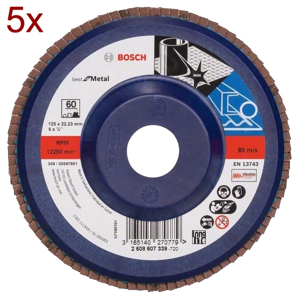Set de livrare 5 x Bosch - X571 - Disc lamelar, profil drept, 125x22.2 mm, granulatie 60