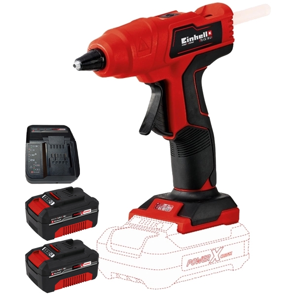 Pistolul de lipit cu bagheta siliconica Einhell TE-CG 18 Li - Solo functioneaza cu acumulatori Power X-Change.