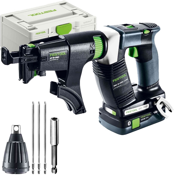 1 x Festool - DURADRIVE DWC 18-4500 HPC 4.0 I-Plus - Masina de insurubat cu 2 acumulatori, Li-Ion, 18 V, 4 Ah, 14 Nm, motor fara perii, turatie reglabila, valiza speciala, accesorii: