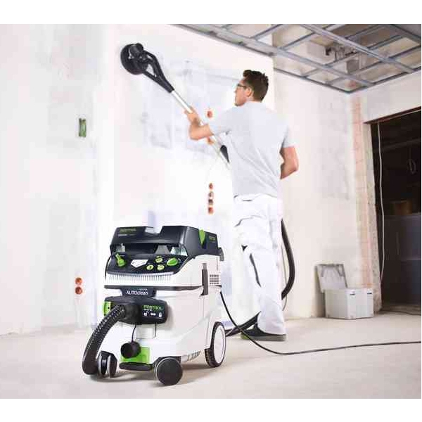 Cu cat un aparat de slefuire indeparteaza mai puternic materialul, cu atat mai performant trebuie sa fie aspiratorul mobil adecvat. Aspiratorul puternic CLEANTEC CTL 36 AC PLANEX cu volumul recipientului de 36 l este configurat constructiv exact pentru randamentul extrem de indepartare a materialului de care dispune slefuitorul cu brat telescopic PLANEX. Cu suport de scule, furtun rezistent la indoire si capac glisant de inchidere ComfortClean in dotarea de serie, pentru o curatare si mai intensa a filtrului. Geometria generoasa a recipientului aspiratorului CTL 36 AC PLANEX ofera un volum mare. Acesta este extrem de mobil, datorita rolelor de directie rabatabile si rotilor spate mari. Pentru utilizarea completa a volumului este responsabil filtrul plan integrat complet in capul de aspirare: astfel, volumul brut al recipientului si volumul net sunt aproape identice. Turbina de mare performanta extrem de compacta asigura o putere de aspirare corespunzatoare. Debitul volumic de 3900 l/min asigura un aer curat. Avizat pentru pulberi din clasa L.