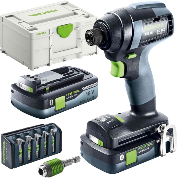1 x Festool - TID 18 HPC 4.0 I-Plus - Masina de insurubat cu impact cu 2 acumulatori, Li-Ion, 18 V, 4 Ah, 180 Nm, M8, motor fara perii, turatie reglabila, led iluminare, valiza speciala: