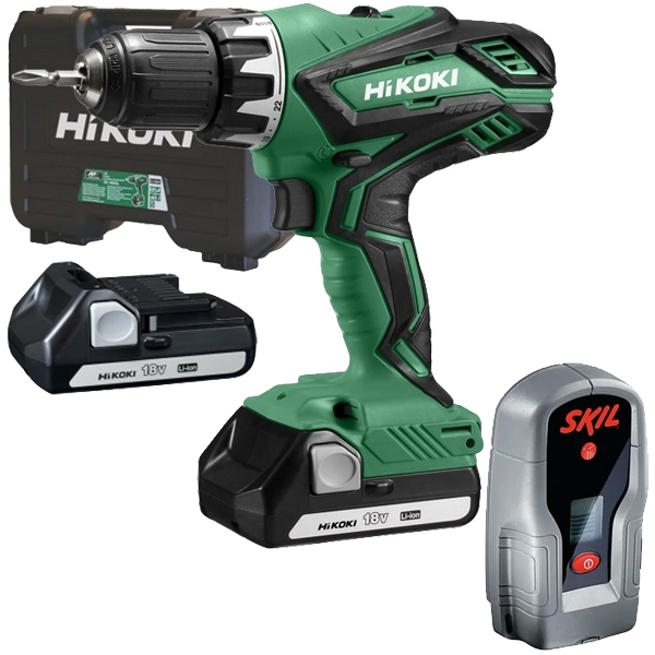 Cod unic produs: Pachet - HiKOKI + Skil - DS18DJLWCZ + 0551 AB - Masina de gaurit si insurubat cu 2 acumulatori, Li-Ion, 18 V, 1.5 Ah, 53 Nm + Detector de metale cu baterii alcaline, 30 mm